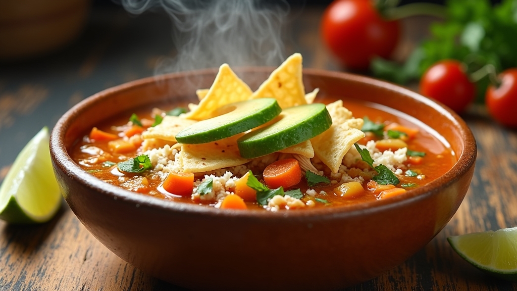 When serving, ladle the soup into bowls and top with crispy tortilla strips, diced avocado, and fresh cilantro. Squeeze lime juice over each bowl for an extra burst of flavor. You can also serve additional tortilla strips on the side for those who want a little crunch with every bite.