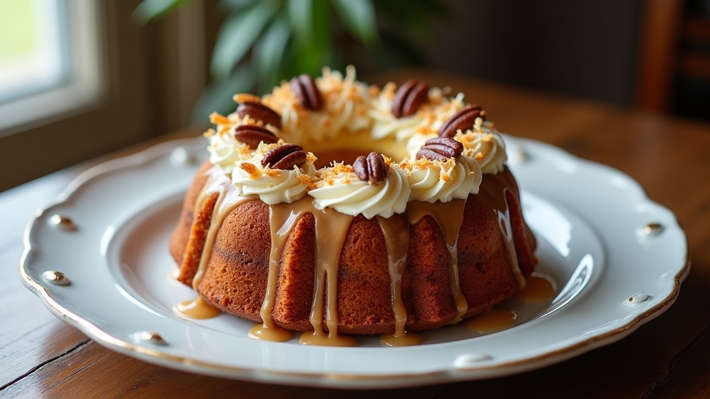 Once you’ve folded in those delicious nuts, it’s time to bake the cake until it’s golden brown and bursting with flavor. Preheat your oven to 350°F (175°C) if you haven’t already. Pour the batter into a greased cake pan, ensuring it’s evenly spread for a consistent cake texture. I love using a toothpick to check for doneness—just insert it into the center, and if it comes out clean, you’re good to go! This baking technique not only gives you a perfect rise but also locks in the moisture that makes every slice divine. Keep an eye on it in the last few minutes; no one wants to burn their masterpiece. Enjoy the delightful aroma as it fills your kitchen!